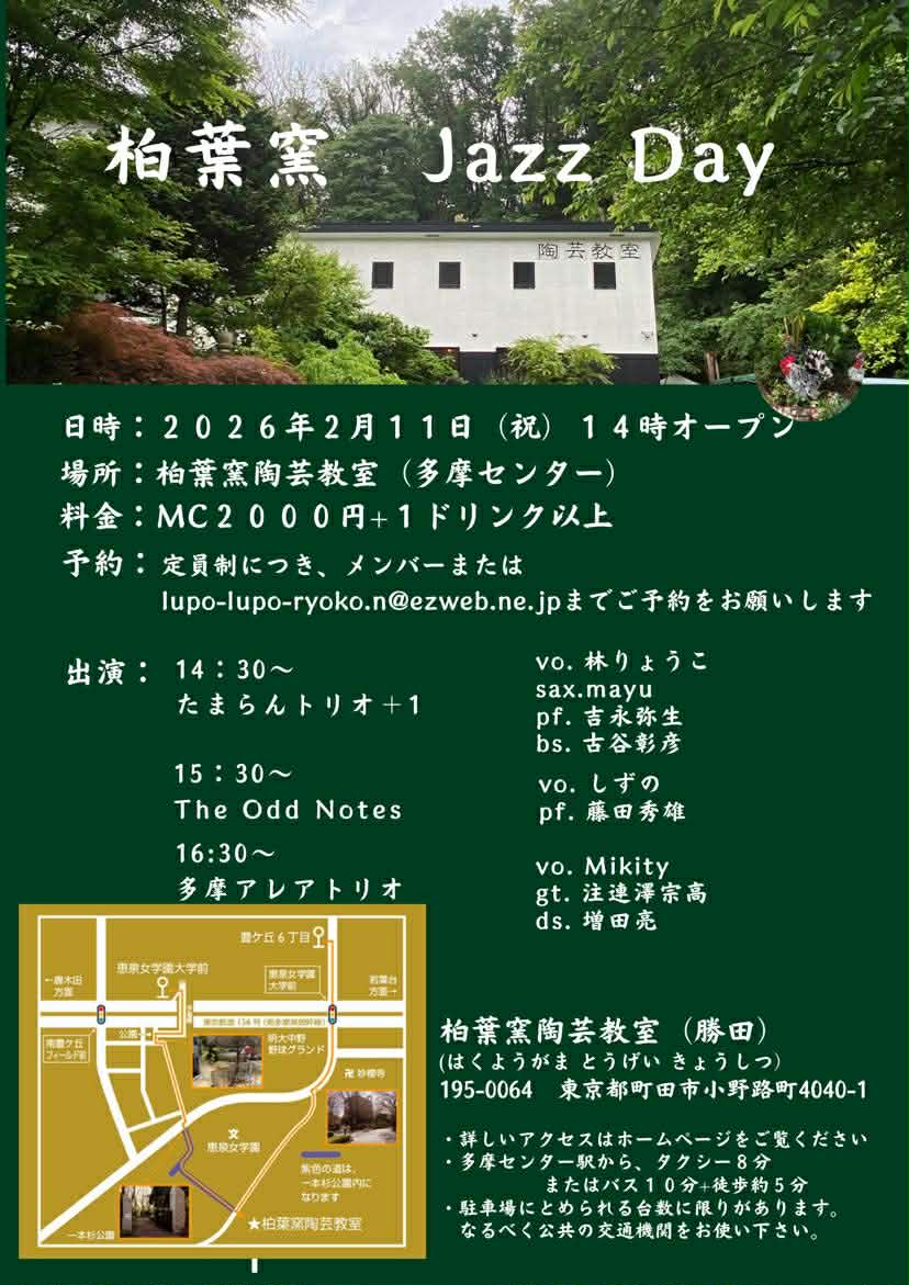 柏葉窯 Jazz Day 「たまらんトリオ+1」で演奏させて頂きます。